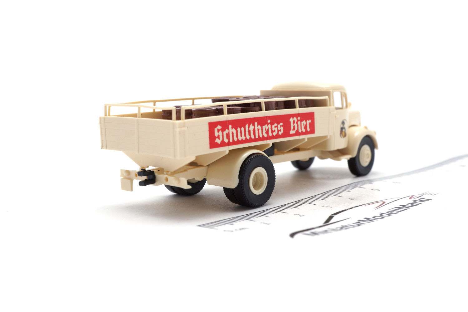 Sie sind hier: Sortiment > Brekina > 1:87 > Mercedes L 311 Pritsche - Schultheiss Bier mit Ladegut