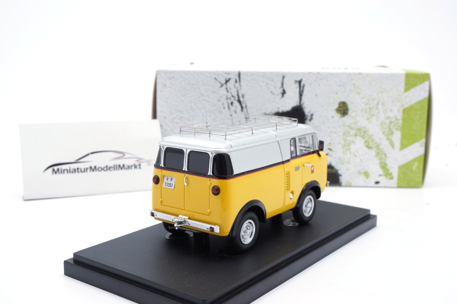 Höchstwahrscheinlich wurde der Jeep FC-150 lediglich mit Führerhaus und ohne Heckaufbau gekauft. Die Schweizer Post entschied sich für einen geschlossenen Kastenaufbau, bei dem das Führerhaus vollkommen integriert wurde. Für große Gepäckstücke bekam der FC-150 - wie nahezu alle posteigenen Fahrzeuge - einen großen Dachständer auf einen Großteil des Dachs montiert. Lackiert in den typischen drei Farben der PTT, gelb und silber, getrennt durch einen schwarzen Strich, avancierte der FC-150 ab der zweiten Hälfte der 1950er Jahre bis in die 1970er Jahre zum vertrauten Bild in den Alpen.