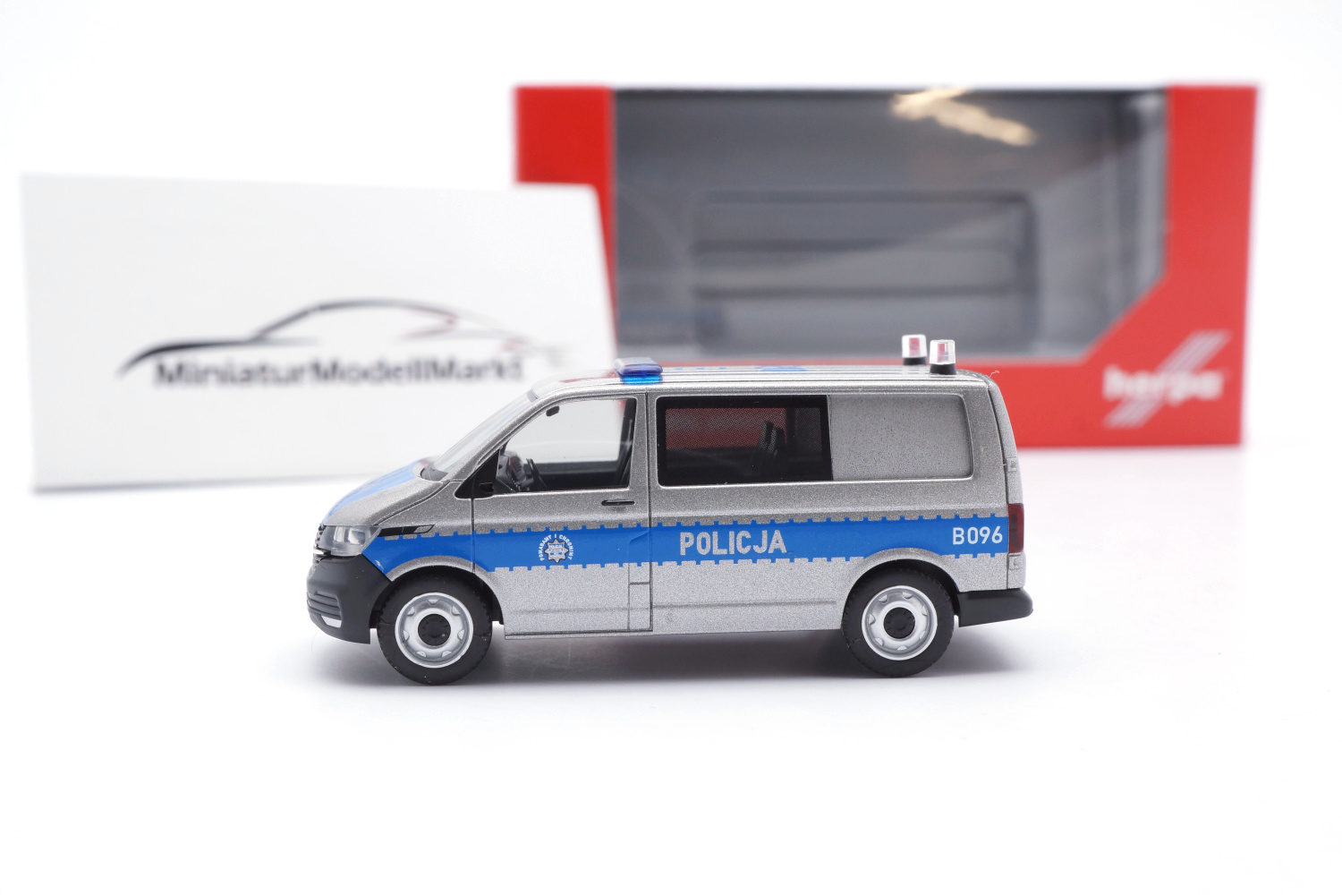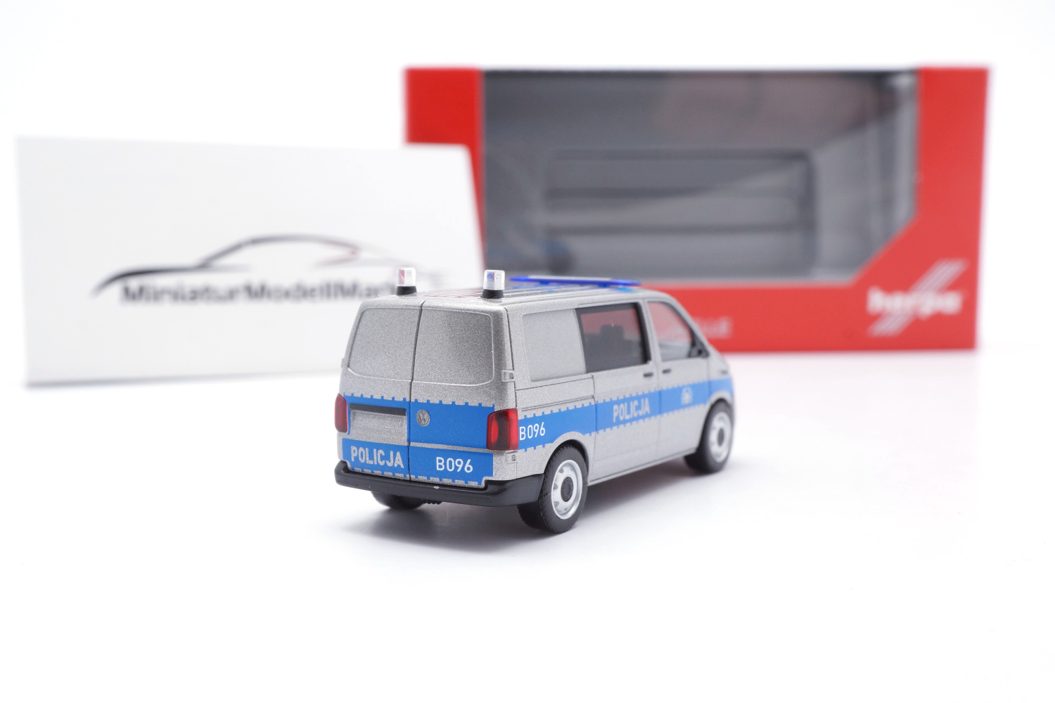 Die Polizei in Polen setzt ebenfalls bereits den neuen VW T 6.1 im Streifendienst ein. Das Fahrzeug wird mit der Kennung B096 auf den Seiten sowie auch am Dach bedruckt und trägt neben dem Warnlichtbalken heckseitig zwei transparente Rundumleuchten.