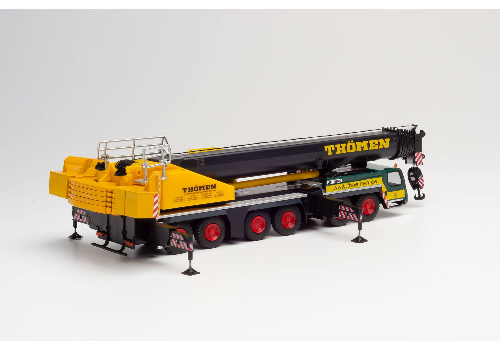 Das Kranunternehmen Thömen aus Hamburg zählt zu den führenden Unternehmen aus dem Bereich Kran- und Schwerlastlogistik in Norddeutschland. Nach dem kleinen Liebherr-Kran LTM 1045/1 sowie einem Sattelzug erscheint nun bei Herpa auch der neue Liebherr LTM 1300-6.2 im Design des Unternehmens.