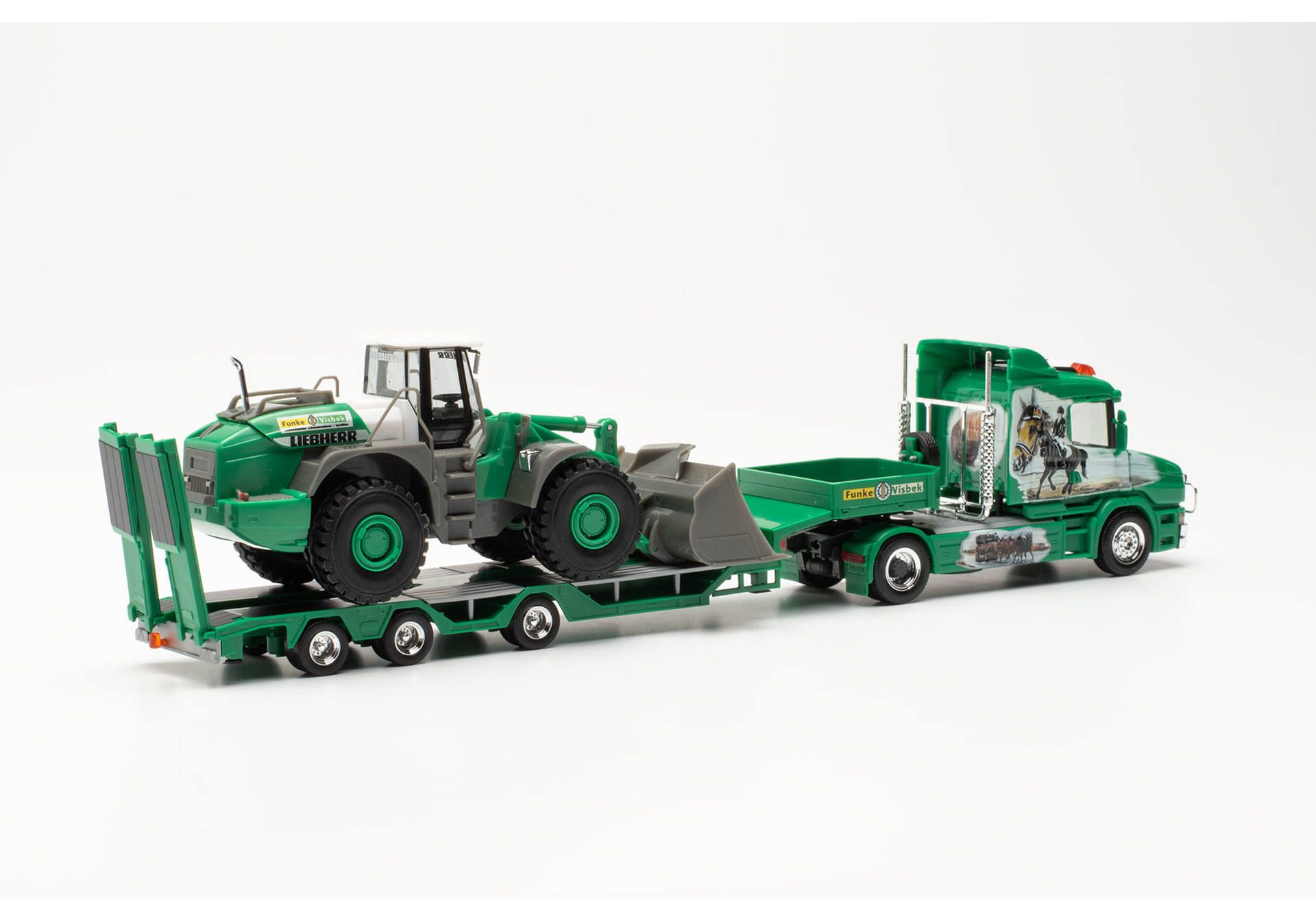 Das Familienunternehmen Funke Visbek wurde 1958 von Gerhard und Anne Funke in Visbek gegründet. In den vergangen Jahrzehnten hat man sich auf alle im Lohn zu verrichtenden Arbeiten in der Landwirtschaft, auf Transporte jeder Art sowie Bau- und Abbrucharbeiten spezialisiert. Der Scania Hauber ist mit Airbrush-Motiven aufgehübscht und das Aushängeschild des Fuhrparks; er zieht einen Goldhofer-Semitieflader mit Radmulden, der zum Transport von unterschiedlichen Land- und Baumaschinen eingesetzt wird.