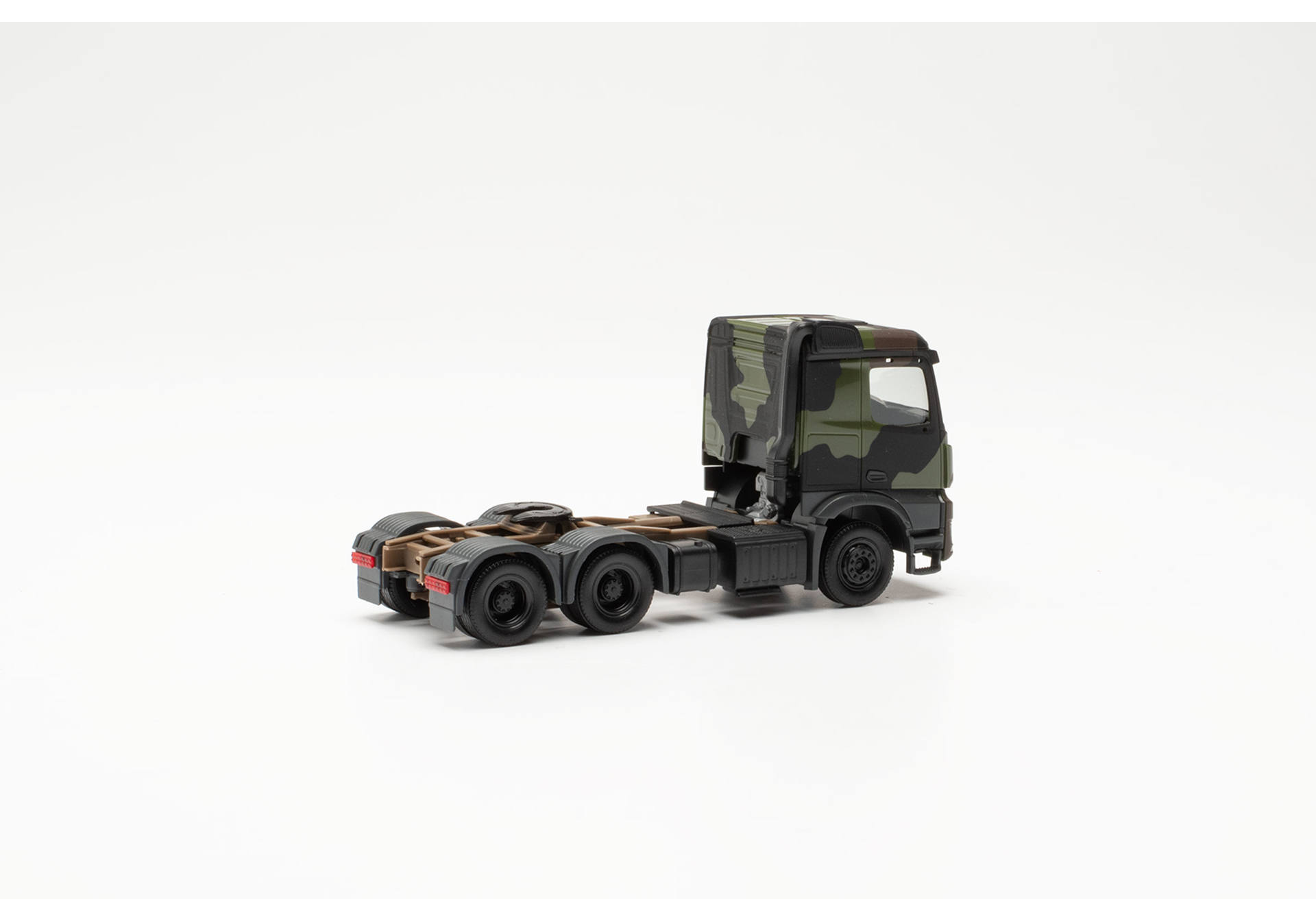 Die Military-Serie wird mit einer weiteren Solozugmaschine ergänzt. Die mit Tarnschema beklebte Mercedes-Benz Arocs Zugmaschine hat einen Pendeleinstieg und kommt zeitnah zu den Originalen „auf die Straße“.