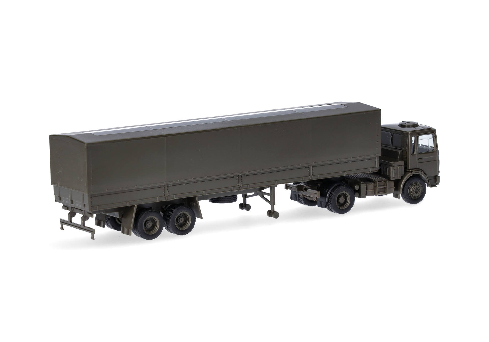 Mit den beiden Militärmodellen aus den aktuellen Neuheiten (Mai/Juni 2024; Artikel 747073 und 747080) bieten wir zwei neutrale Modelle für Bastler an. Der klassische MAN F8 Planen-Sattelzug mit zahlreichen Anbauteilen für das Aufliegerchassis ist auch bekannt unter 740050. Der Mercedes-Benz LKW mit Rundplane hingegen war noch nicht undekoriert erhältlich.