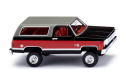 Karosserie und eingesetzte Rückspiegel reflexsilber lackiert. Fahrgestell schwarz, Inneneinrichtung mit Armaturenbrett, Lenkrad und Innenspiegel ebenfalls schwarz. Scheinwerfer transparent, Rückleuchten rottransparent eingesetzt. Felgen silber gehalten. Schwarzer Kühlergrill mit chromglänzender Heißfolienprägung veredelt. Mercedes-Benz-Stern auf der Motorhaube eingesteckt. Heckseitiger Mercedes-Benz-Stern silbern aufgedruckt. Fensterrahmen schwarz, B-Säule ebenfalls schwarz gehalten. Heckfenster mit schwarzem Rahmen und rot bedruckter dritter Bremsleuchte. Blaulichtbalken mit Mittelsteg dachmittig eingesteckt. Motorhaube mit schwarzem Polizei-Schriftzug. Seitlich horizontaler blauer Warnstreifen mit weißem Schriftzug Polizei mit nach oben und unten begrenzendem Reflektorstreifen. Heckseitig blaue Warnfläche mit weißem Reflektorstreifen und Polizeischriftzug sowie blauer Kofferraum.